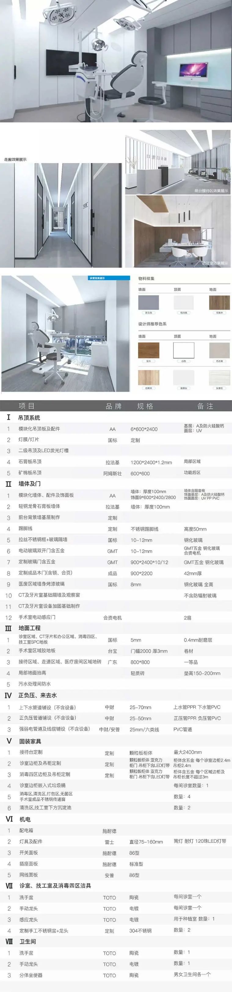 適用于診所新建及改造項目,設計簡潔大方,風格明快典雅,色系可調、靈活多變。