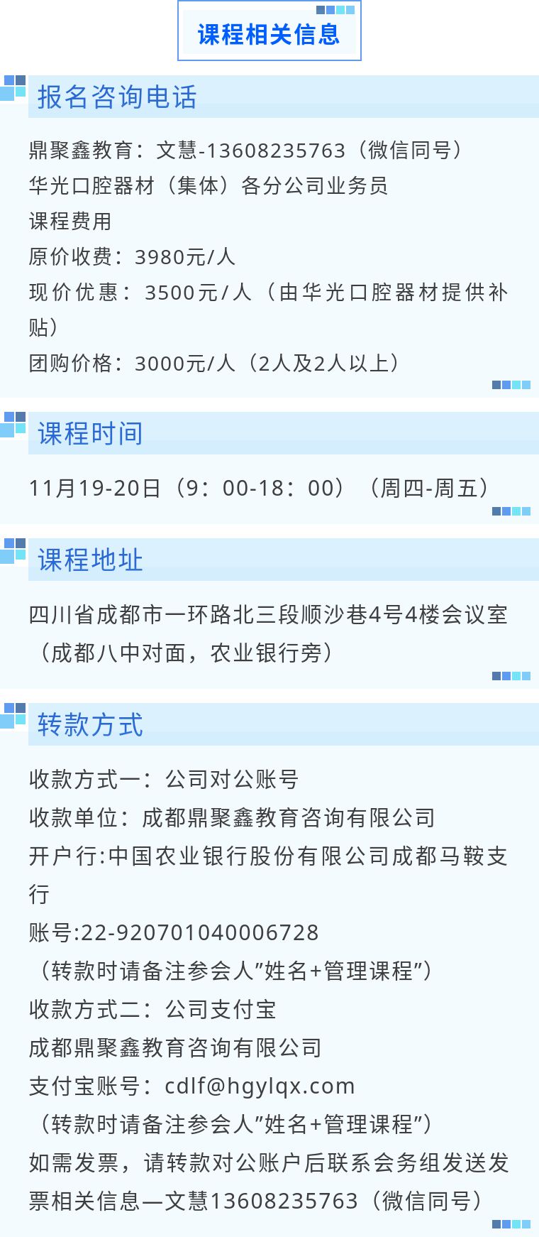 11月19-20日 口腔店長管理運營課程(做好運營業績倍增)